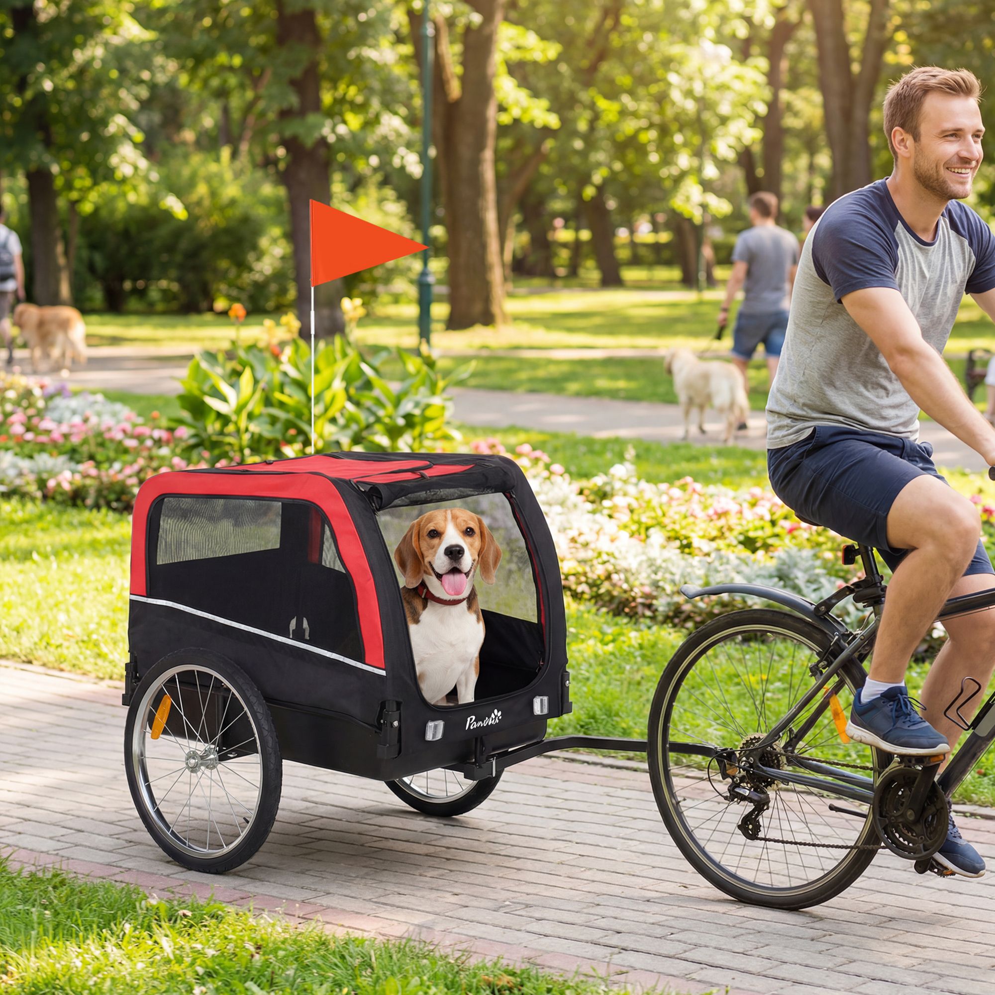 Longing to share bike adventures but worried about bumpy paths and post-ride messes? Rough terrain can make your pet anxious, and cleaning flimsy carriers is a chore. The PawHut bike trailer for dogs changes everything. The large wheels of the dog bicycle trailer absorb shocks for a smooth journey, while the stable frame offers security. A solid, easy-clean base means more carefree fun together on any trail.