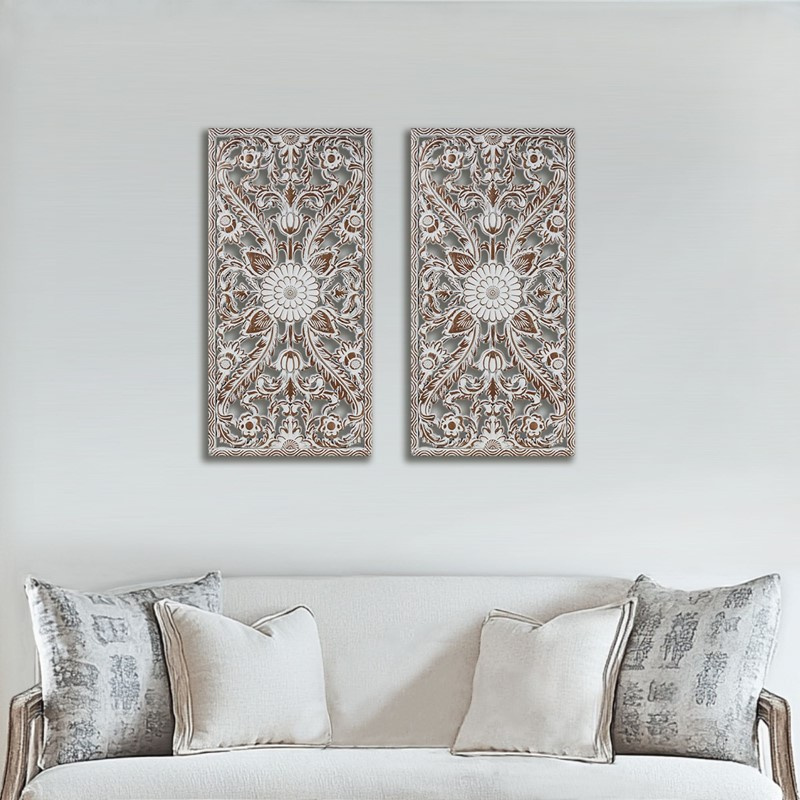 2 PCS Botanical Panel Distressed Carved Wood Wall Decor Set