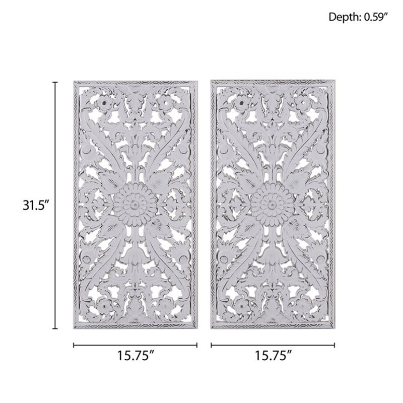 Home > 2 PCS Botanical Panel Distressed Carved Wood Wall Decor Set