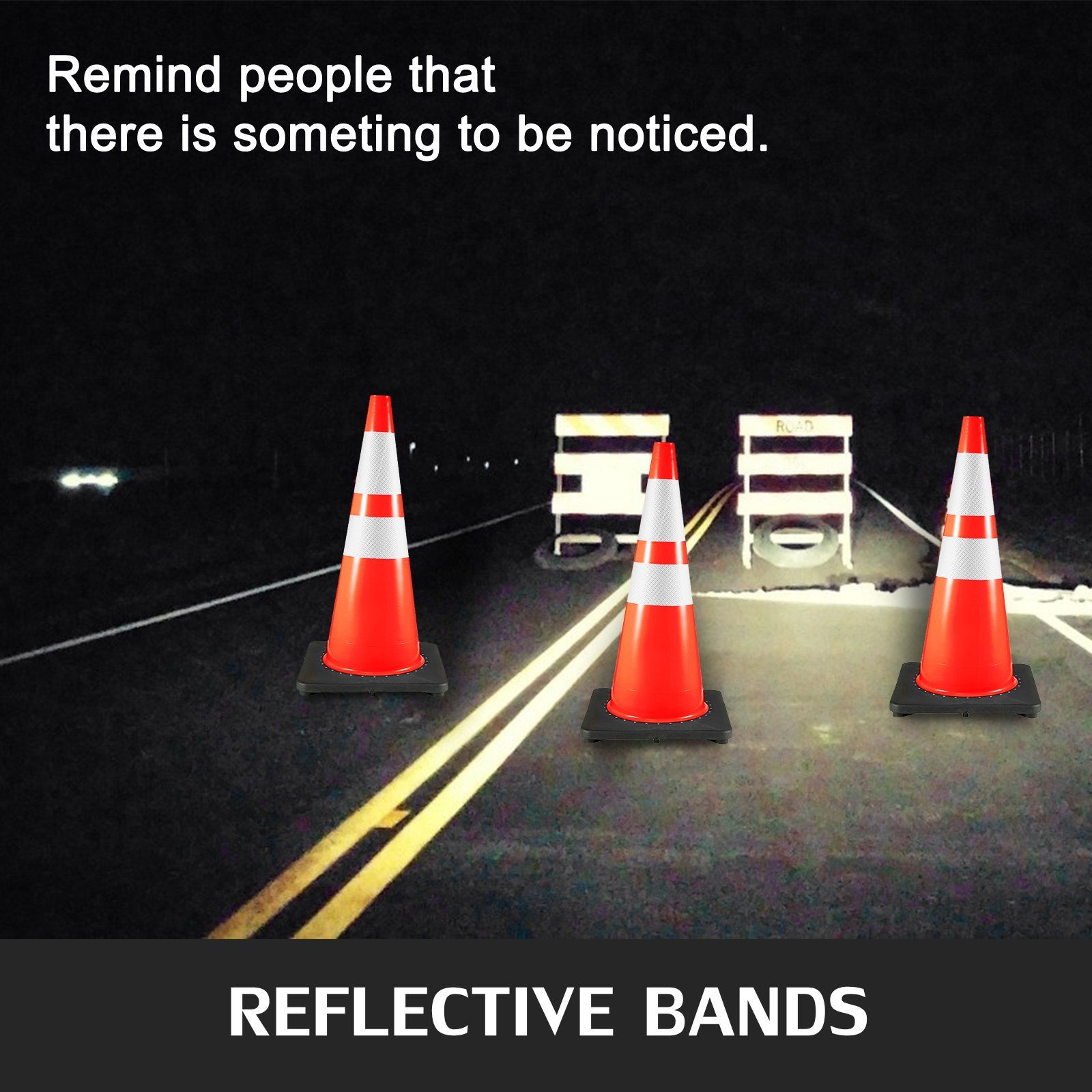 2.High-Visibility Cones: Our fluorescent orange traffic cones feature high visibility, which makes them visible from any angle at distance as far as 800 feet. Moreover, two 6" x 4" silver reflective collars make the traffic cones noticeable, so people can be warned no matter if it's day or night, sunny or rainy.