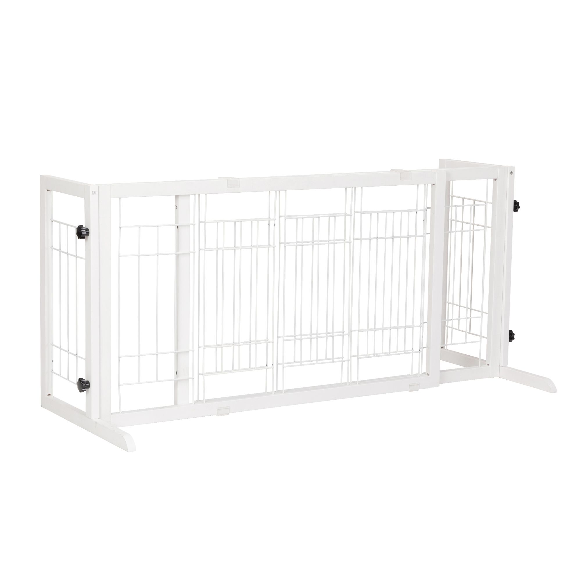 Home > Freestanding Wooden Pet Fence for Stairs, Doorways and Hallways, White
