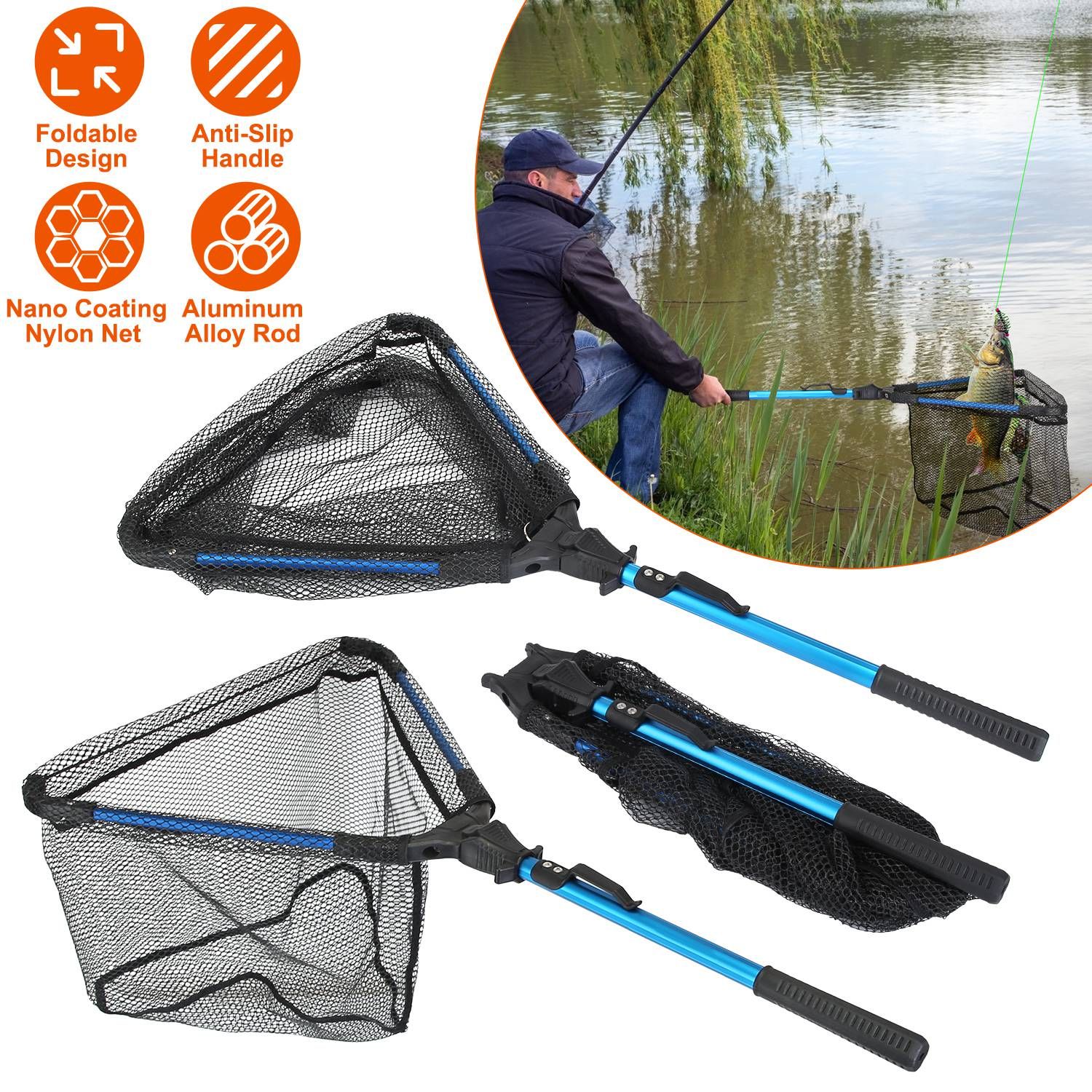 Foldable Fishing Net: With the folding size of 5.12x16.93x2.17in, our foldable fishing net can be conveniently carried or transported to anywhere you want. Just press and flip over the triangular net, easily fit in various fishing bags.