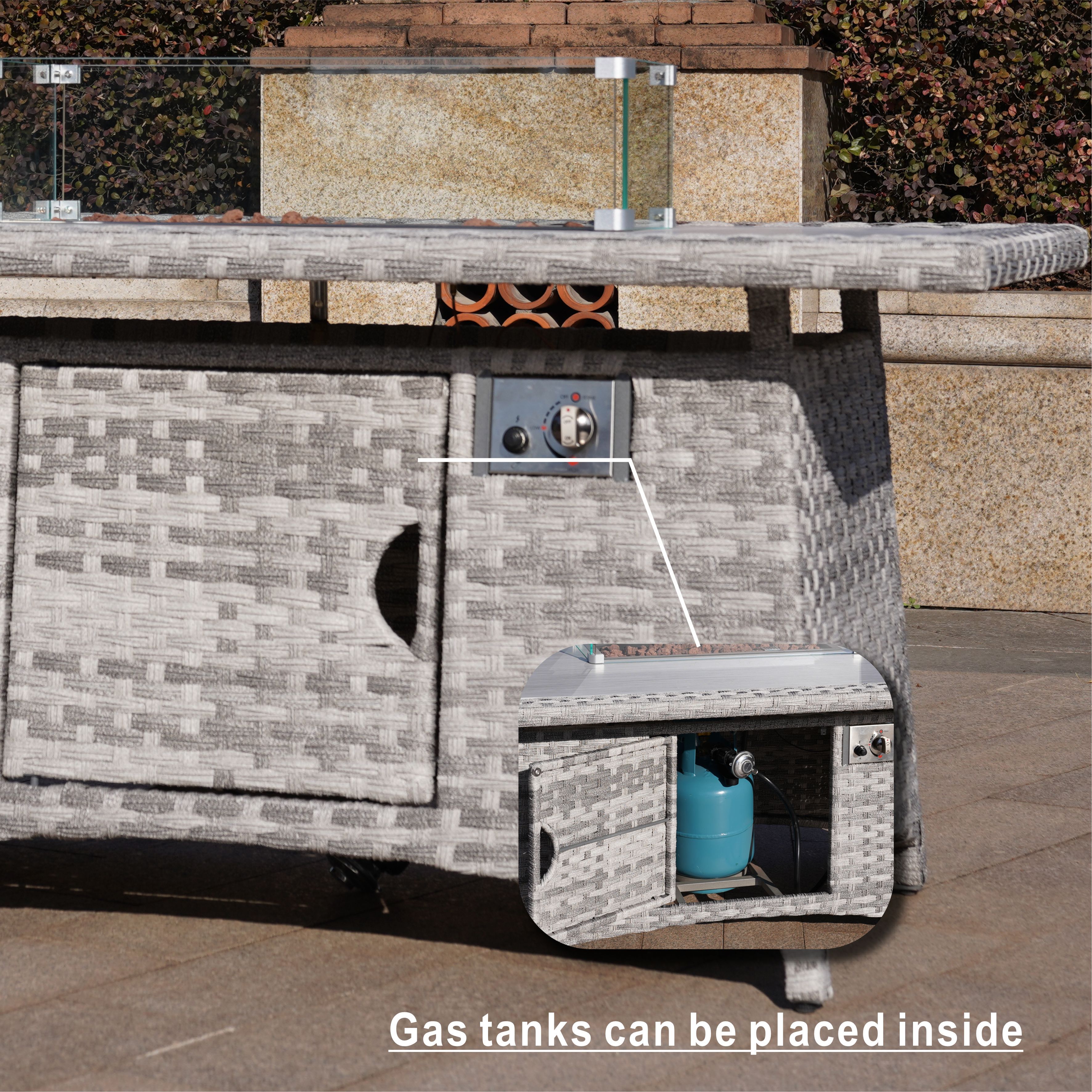 5-Piece Gray Wicker Outdoor Conversational Sofa Set with Fire Pit Table and Ottoman 5-Piece Gray Wicker Outdoor Conversational Sofa Set with Fire Pit Table and Ottoman 5-Piece Gray Wicker Outdoor Conversational Sofa Set with Fire Pit Table and Ottoman