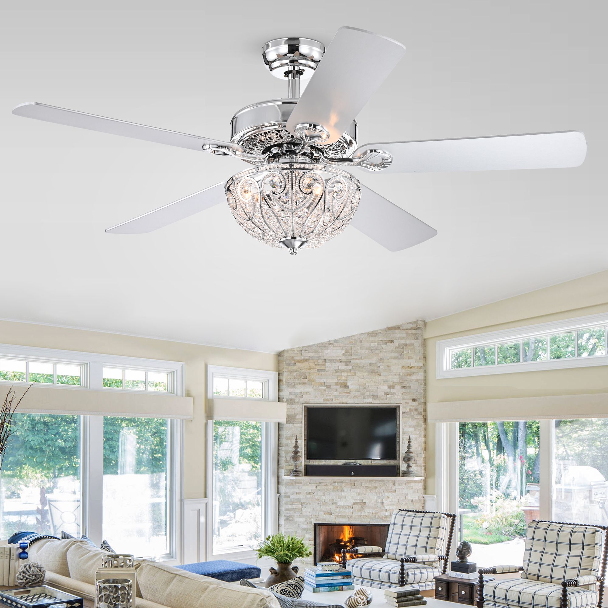 Circulate a little fresh air with this Norin 52-inch lighted ceiling fan. A dazzling crystal bowl shade dresses up the fan, while five reversible blades keep the air moving in the right direction for maximum comfort year round. Chrome hardware completes the look to create a glamorous addition to your decor.