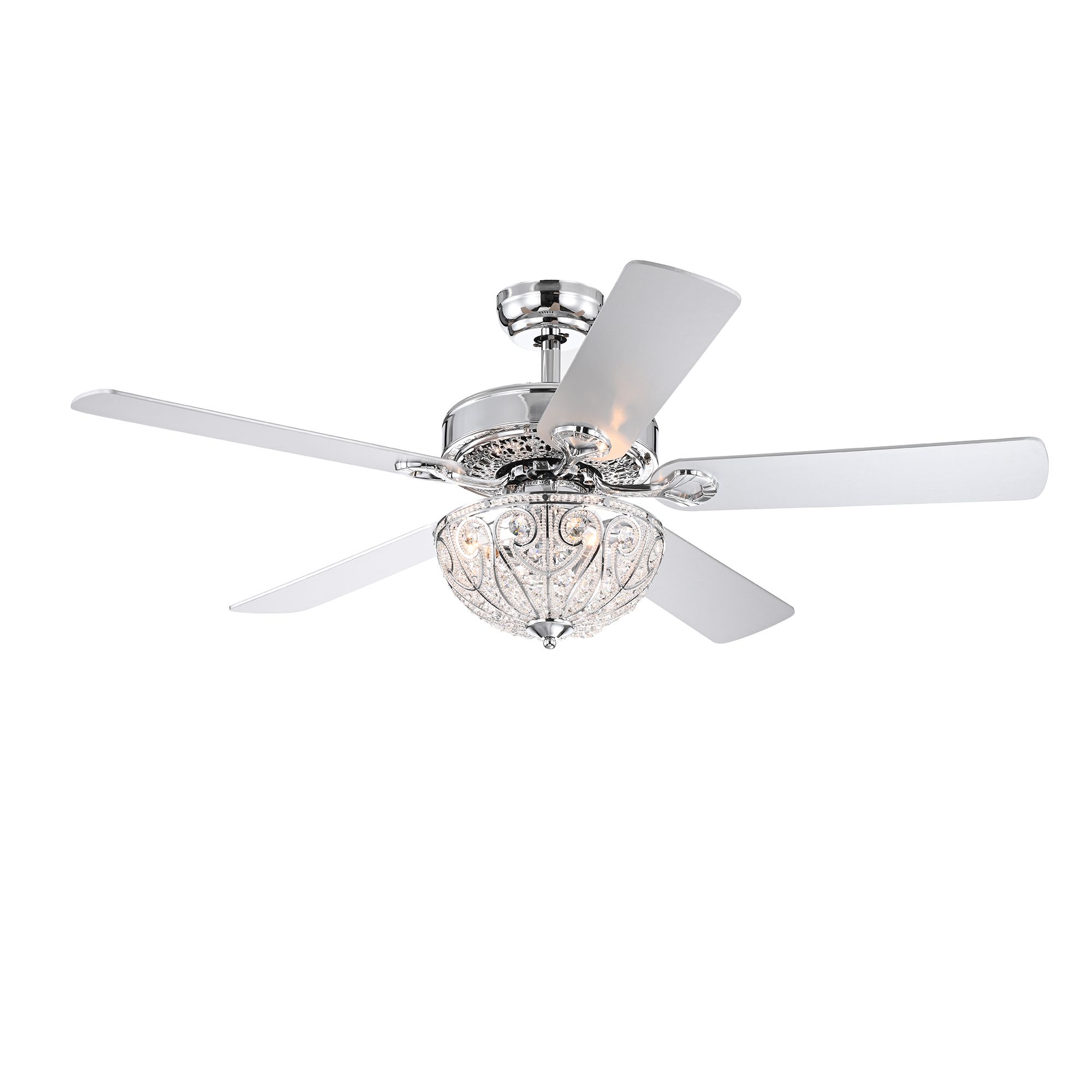 Norin Chrome 52-Inch 5-Blade Lighted Ceiling Fan with Crystal Bowl Shade (Includes Remote)