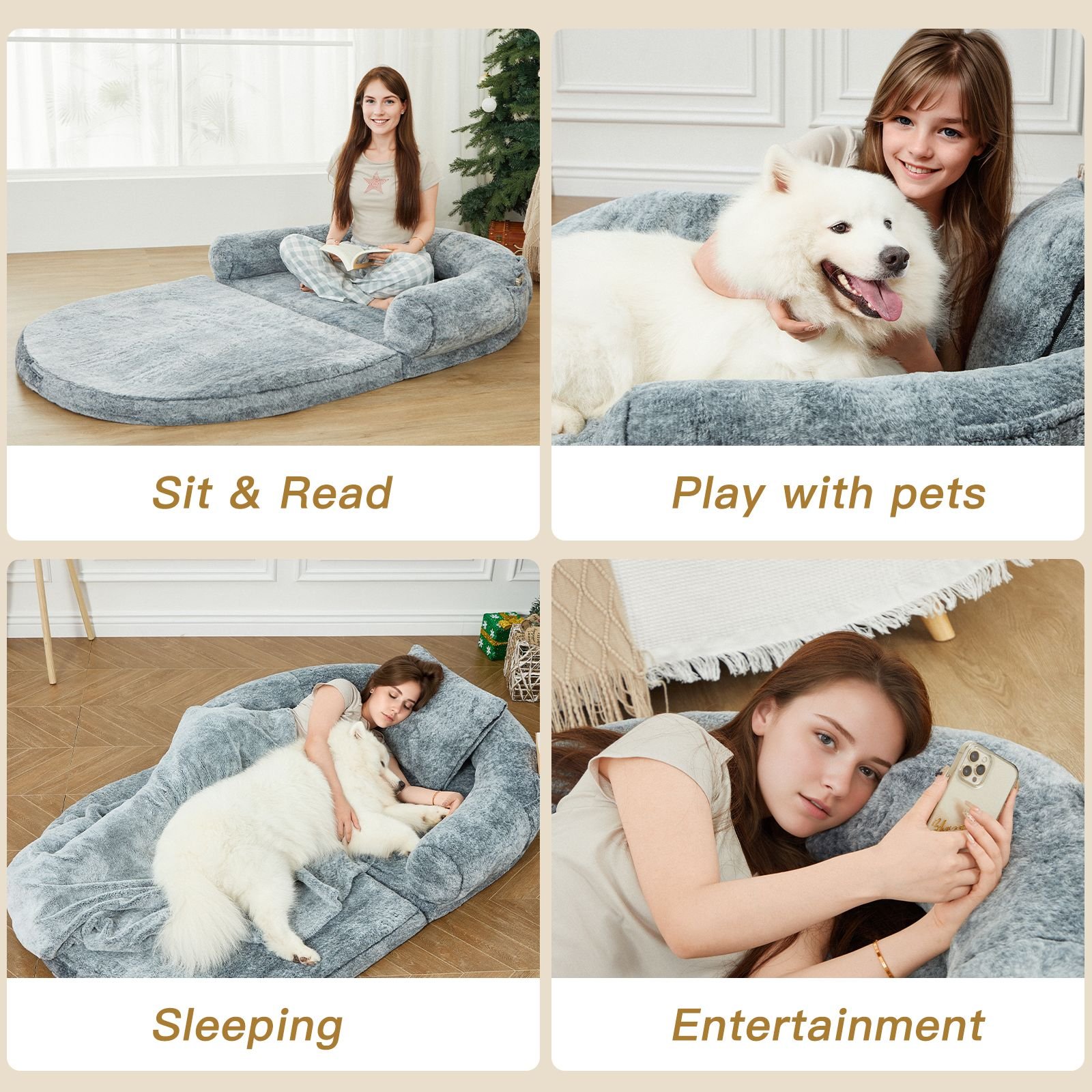 1.Luxurious Short Plush Material: Our human dog bed is made of high-quality short plush material, offering a soft touch and ultimate comfort. It keeps you and your pet warm and cozy on cold nights.