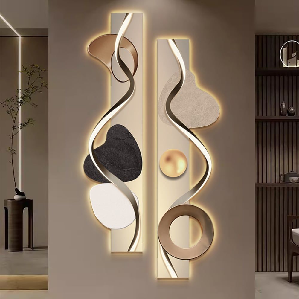 Add a touch of modern sophistication to your living space with this abstract wall art, featuring integrated LED backlighting. This dual-panel piece showcases a unique geometric design, creating a striking visual effect that enhances any room's ambiance.