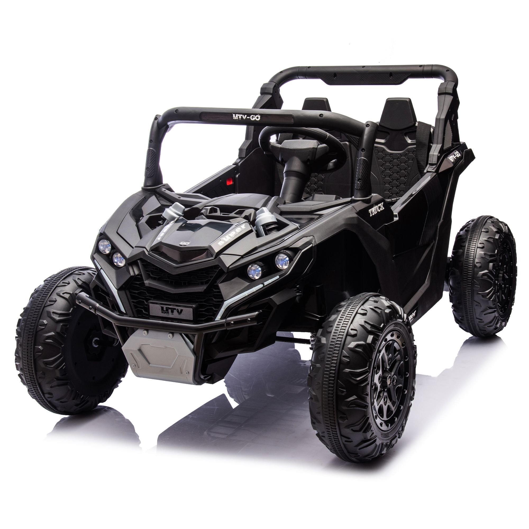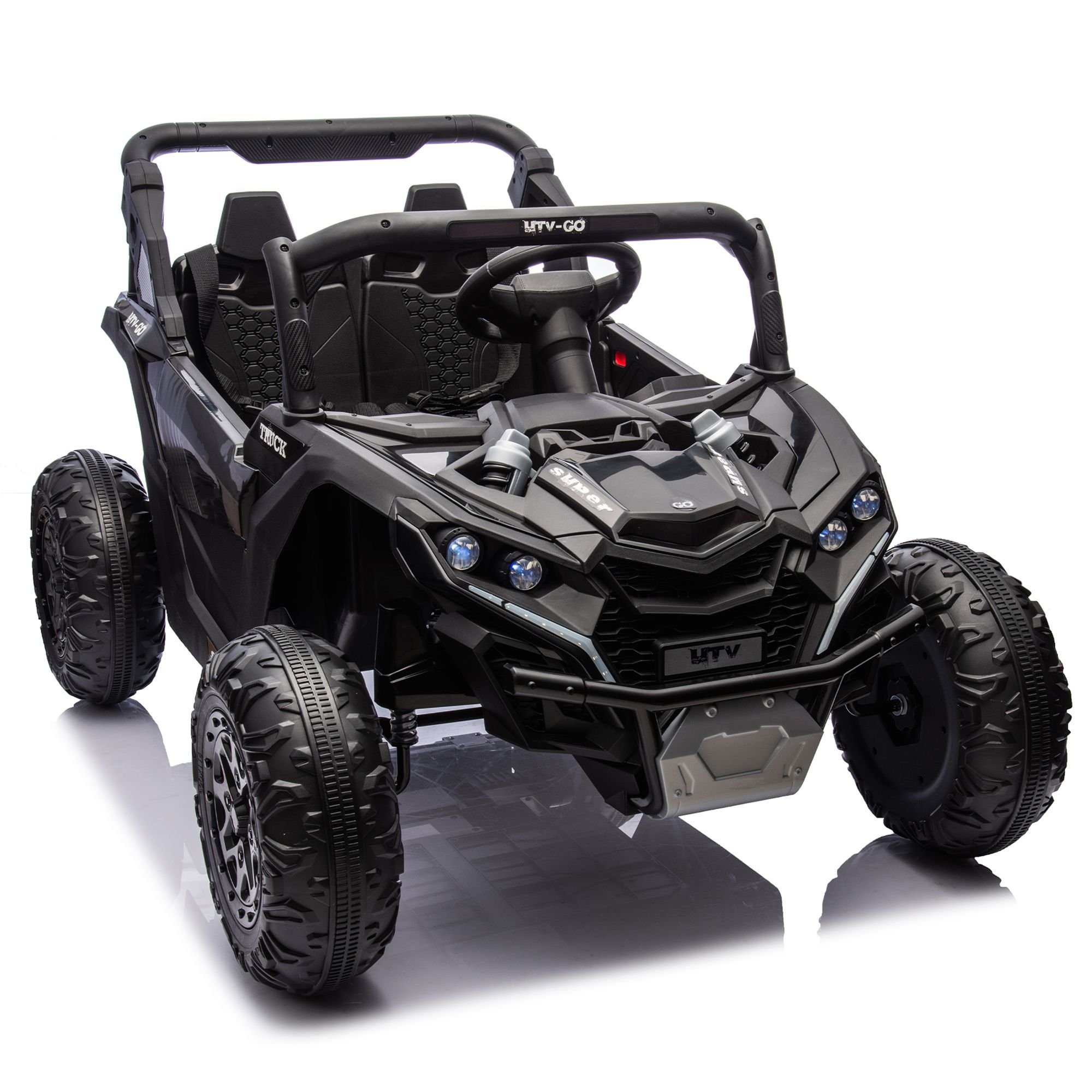 Four wheel shock absorber system: advanced four wheel shock absorber system, like for children's car installed a set of magic buffer magic. Whether driving on a flat road or encounter rough trails, this system can play an excellent role, effectively absorb and dissolve the vibration from the ground, to ensure that the children's car always keep running smoothly. Let the children feel no obvious bumps in the ride process, as if driving in the cloud as comfortable.