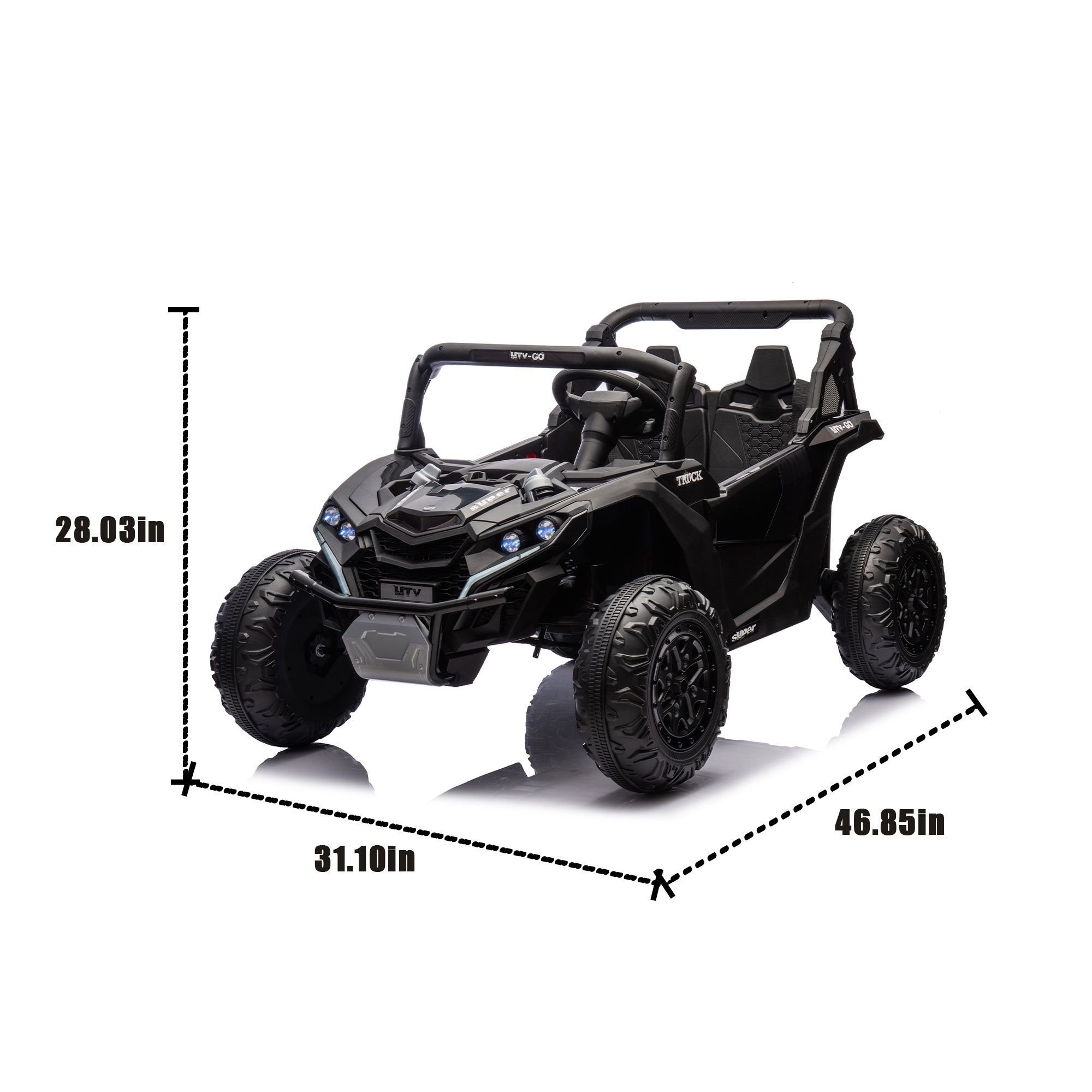 Multimedia function: The unique multimedia function adds rich and colorful entertainment elements to the children's car. Children can enjoy beautiful music while driving, making the whole driving experience more lively and fun. The company of multimedia can not only bring children a pleasant mood, but also stimulate their imagination and creativity.Volume adjustable: The intimate volume adjustable function gives children and parents more independent choices. The volume can be easily adjusted according to the child's preferences, the environment at that time, and the wishes of the parents. Whether you want to enjoy the driving process quietly, or you want to make the music more loud and cheerful, it can be achieved through simple operations to meet the needs of different scenarios.Battery display: specially equipped battery display function, like a child's car energy indicator. It allows parents and children to clearly understand the remaining power of the child car at any time, so that charging planning can be carried out in time. Avoid the embarrassment of sudden interruption of play due to lack of power, and ensure that the child can continue to enjoy the happy driving time without worrying about the power problem.Features:BATTERY:24v7ahMOTOR:40w*2Maximum Load:110 lbsCar speed:4-6km/h 2.49-3.73MPHApplicable age:3+ years old Test standards:ASTM,FCCFUNCTION:True two-seater designRemote controlSlow startFour wheel shock absorberLarge wheel sizeIndependent safety beltStorage in the backFront anti-collision bar designMultimedia functionAdjustable volumePower displayProviding 4-6km/h(approximately 2.49 to 3.73 mph) speed for kids over three years old to enjoy the fun of riding.