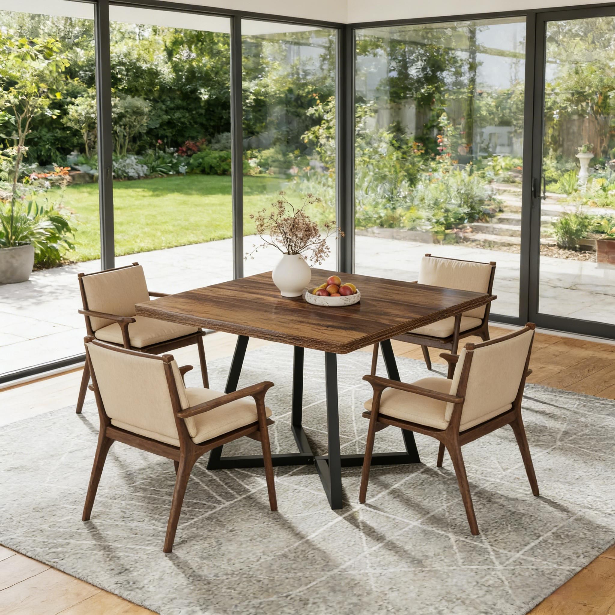 Classic Design - The industrial-inspired, square dining table with vintage brown wood and a contrasting black metal frame perfectly suits various decor styles. Serving as a timeless centerpiece, it elevates your space from modern to rustic.