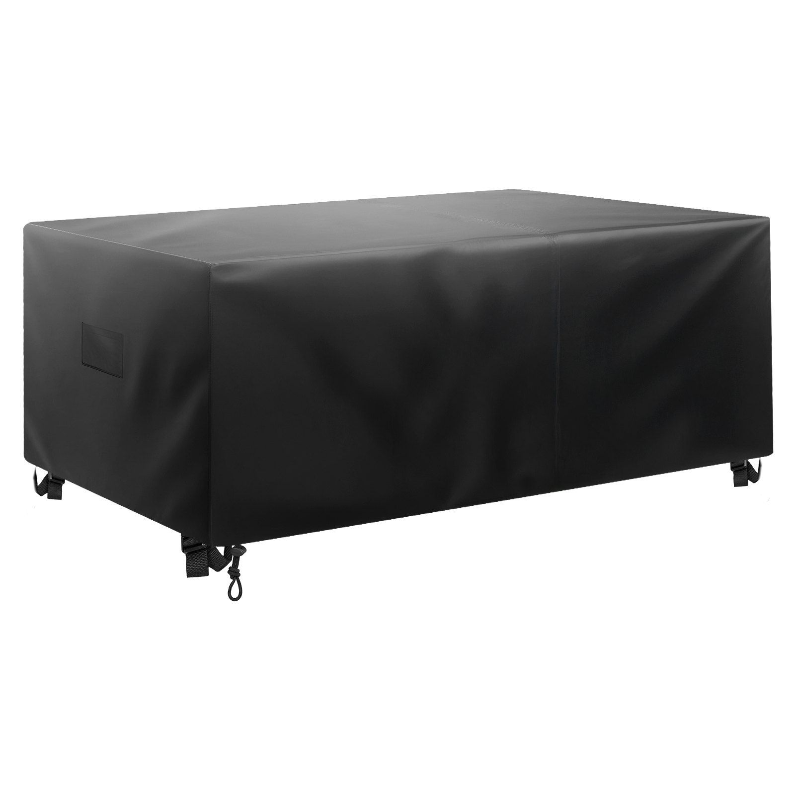 1.Universal Fit: This 126"L x 63"W x 28"H patio furniture cover fits most furniture like coffee tables, chairs, sofa, couch, and more. It provides full coverage and protection. Please check your furniture's dimensions for proper fit